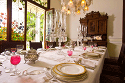 Se puede realizar en esta regia casona cenas exclusivas para 2 personas hasta un magno evento para 1,500. También hay una exhibición exclusiva La Manteleria Fina y Antigua de la Quinta Montes Molina.