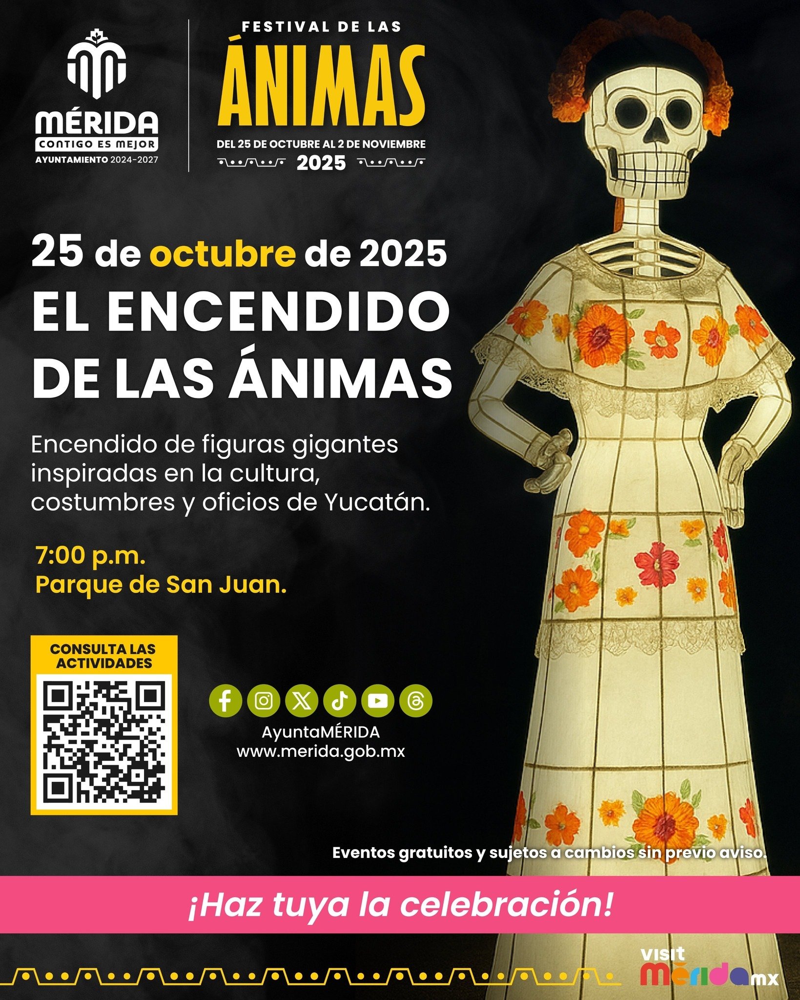 Don’t miss how the night comes alive with giant illuminated figures inspired by Yucatecan culture and traditions, in a dazzling display of light, color, and festivity.