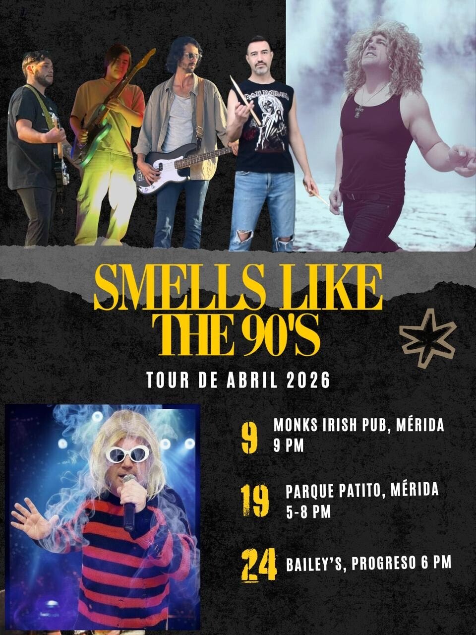 Join the band “Smells Like the 90s” for a unique, family-friendly afternoon of live rock! The fun awaits at Bailey’s Bites & Bar in Progreso, where you can sing and dance to the greatest hits of the ‘90s—from Green Day, AC/DC, Oasis, and Pearl Jam to The Offspring, Blink-182, Metallica, Guns N’ Roses, Radiohead, and of course, Nirvana.