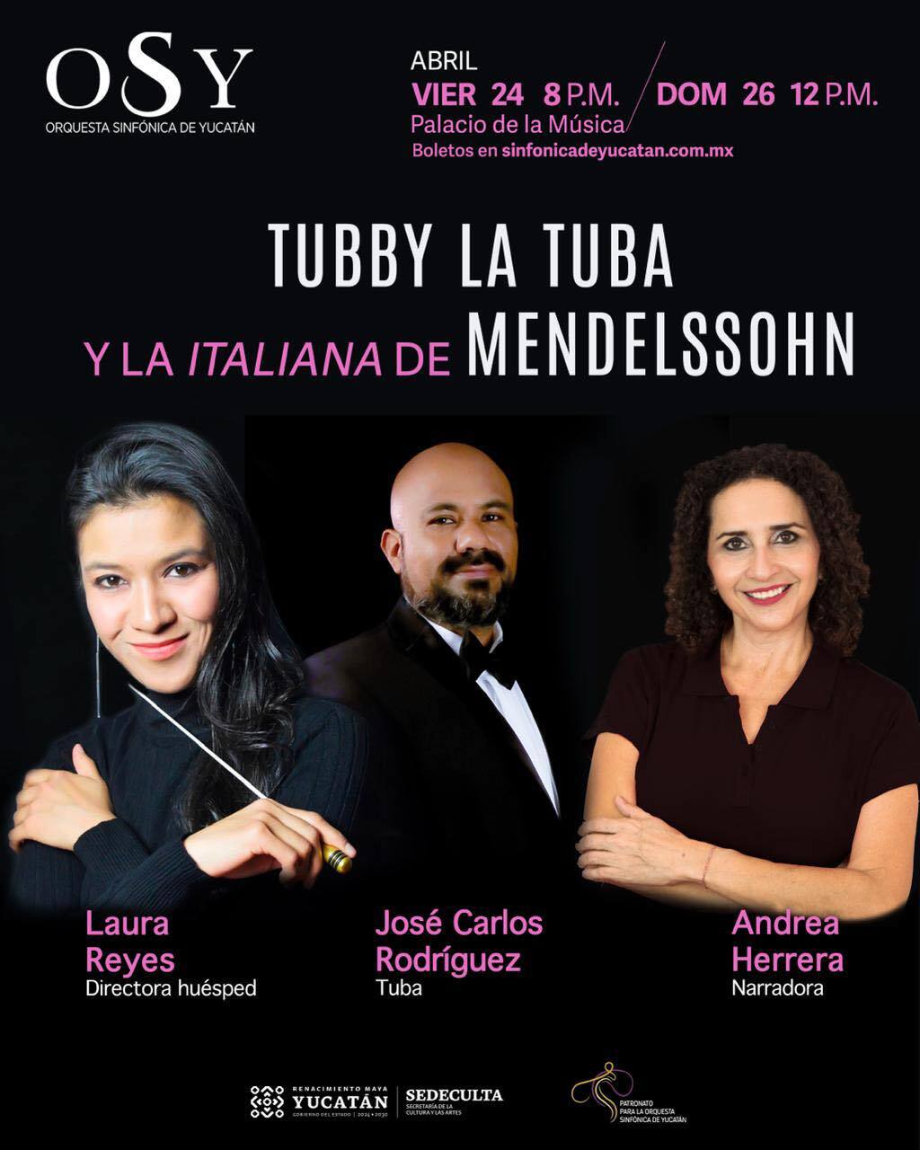 Audiences will enjoy the symphonic tale Tubby the Tuba, conducted by guest director Laura Reyes, featuring José Carlos Rodríguez as soloist and Andrea Herrera as narrator. The program also includes Symphony No. 4 “Italian” by Felix Mendelssohn.