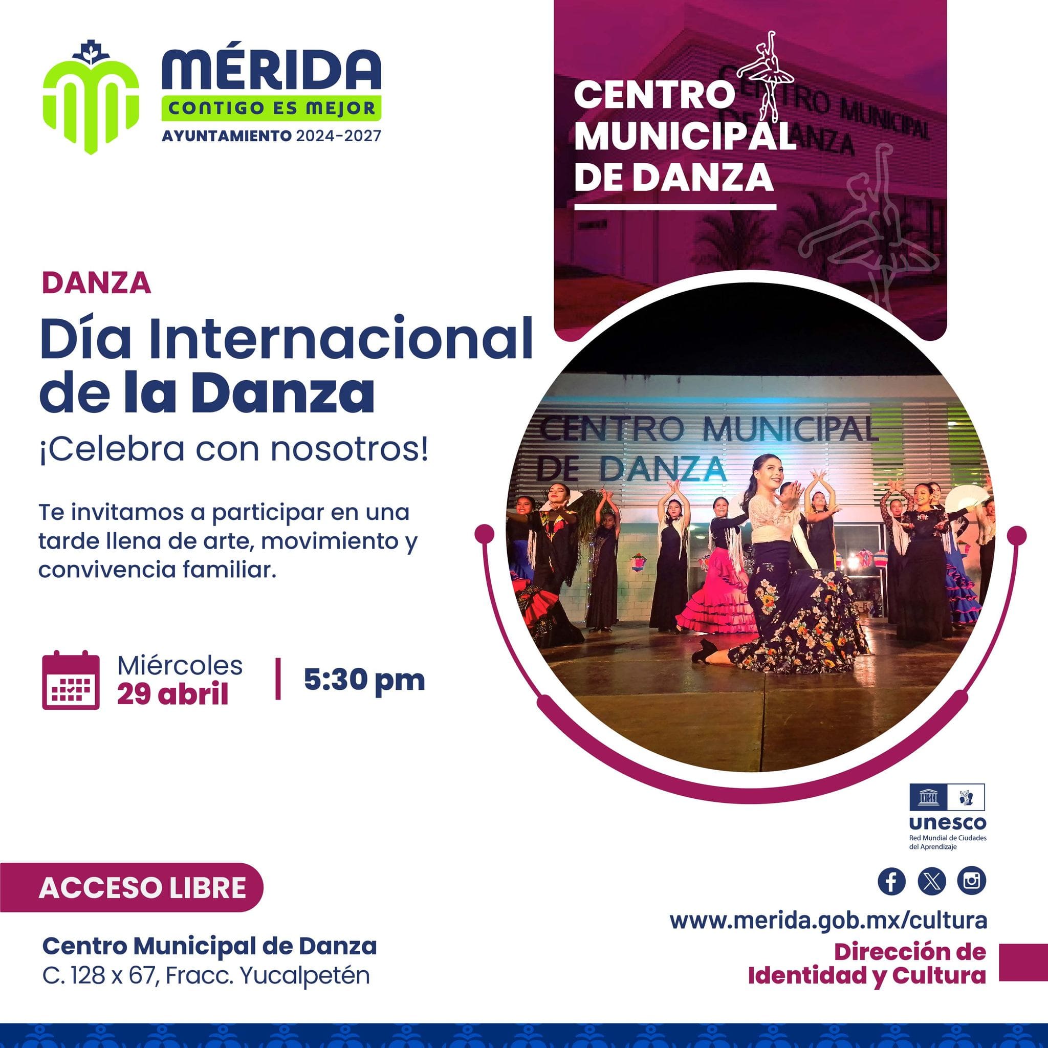 Este 29 de abril a las 5:30 pm, celebra el Día Internacional de la Danza con una tarde llena de movimiento, arte y convivencia familiar en el Centro Municipal de la Danza. Una oportunidad perfecta para disfrutar del talento local y compartir en comunidad. La entrada es libre.