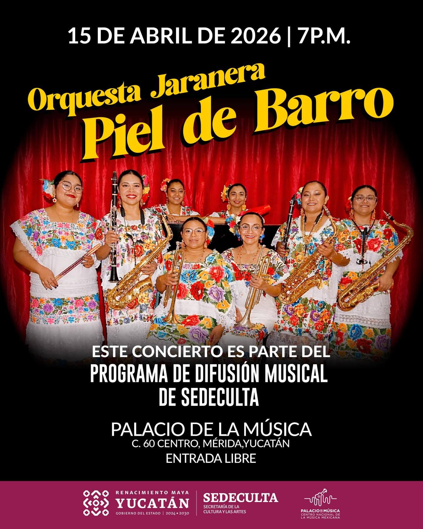 La Secretaría de la Cultura y las Artes de Yucatán presenta el debut de la Orquesta Jaranera “Piel de Barro”, una agrupación integrada por mujeres yucatecas que propone una mirada contemporánea a la jarana, sin perder de vista sus raíces.