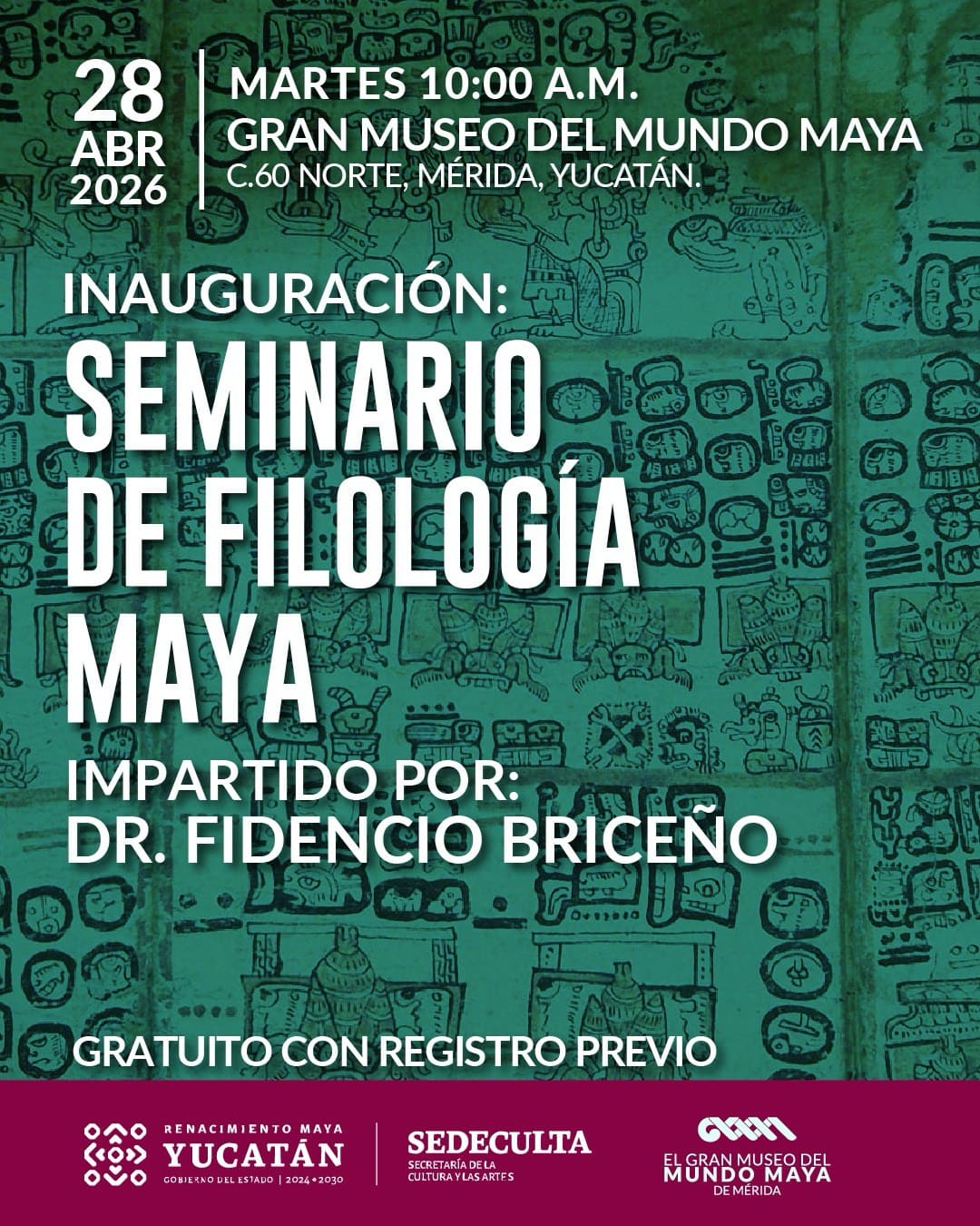 Este 28 de abril, de 10 am a 1 pm, el Gran Museo del Mundo Maya será sede de un seminario de filología maya impartido por el Fidencio Briceño Chel.
