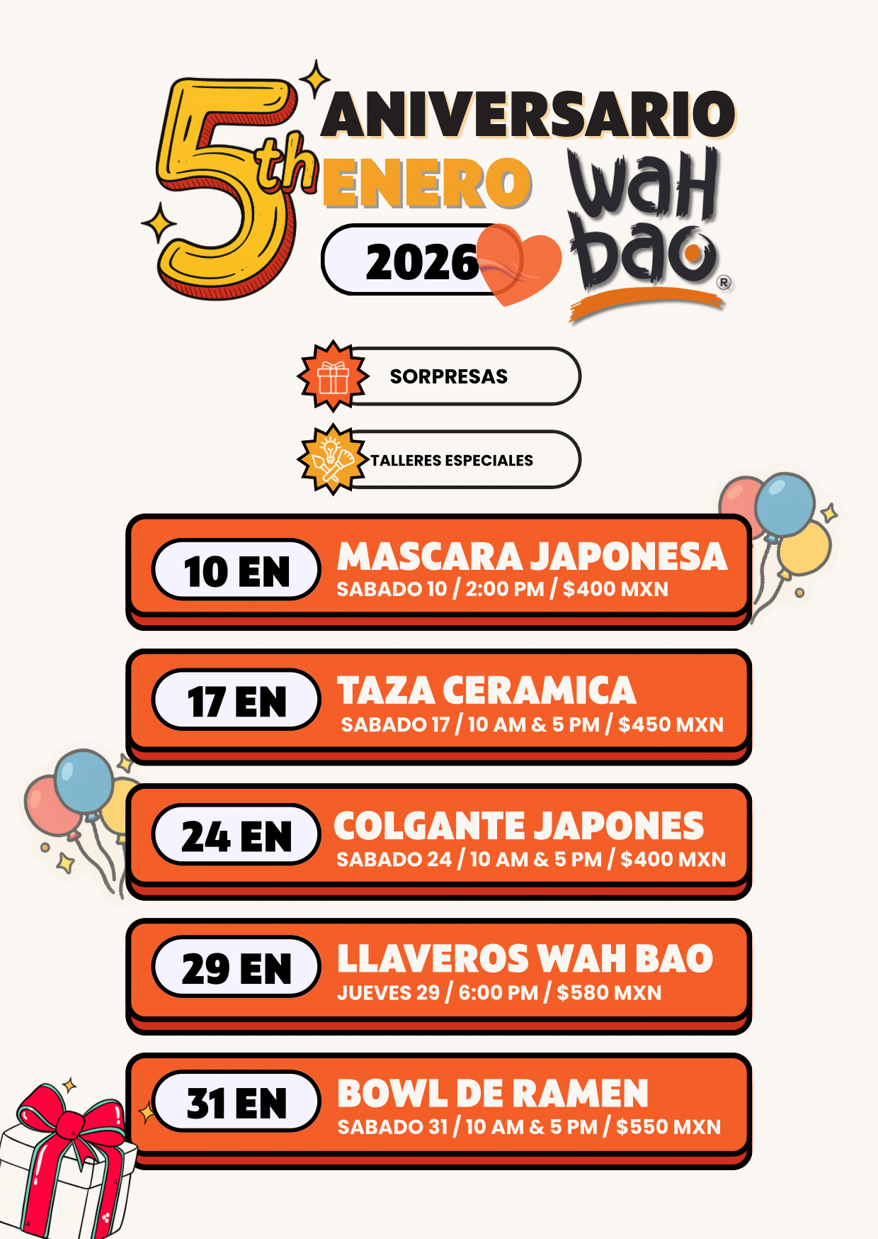 Para celebrar el quinto aniversario de Wah Bao, el restaurante llevará a cabo talleres creativos cada semana, todos con precio especial por aniversario. Una invitación a crear, relajarte y celebrar entre arte, cerámica y mucha inspiración.